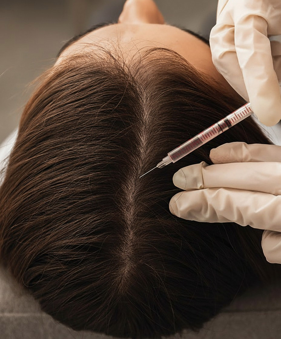 Personalized protocols using platelet-rich plasma, exosomes, and growth factors to strengthen hair follicles, improve scalp health, and stimulate new hair growth.